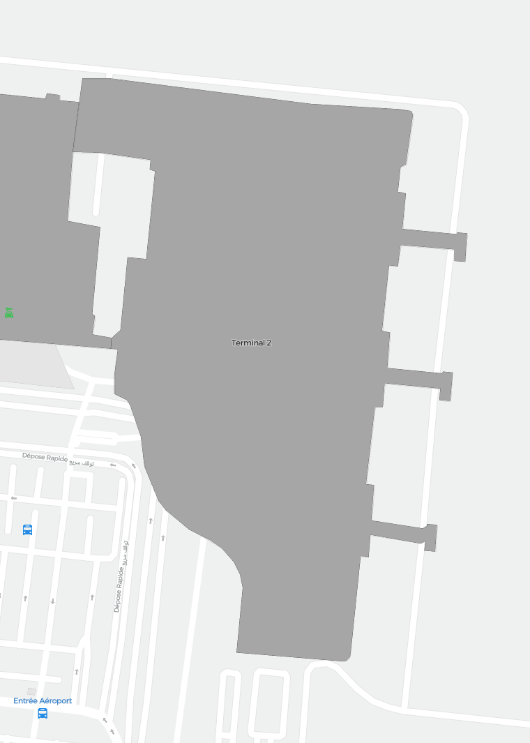 To jest powiększalna mapa nad Marrakesz (RAK). Mapa pozwala zobaczyć teren z terminalami, parkingami, a na niektórych lotniskach także szczegóły dotyczące bramek, wypożyczalni samochodów i innych udogodnień przy powiększeniu.