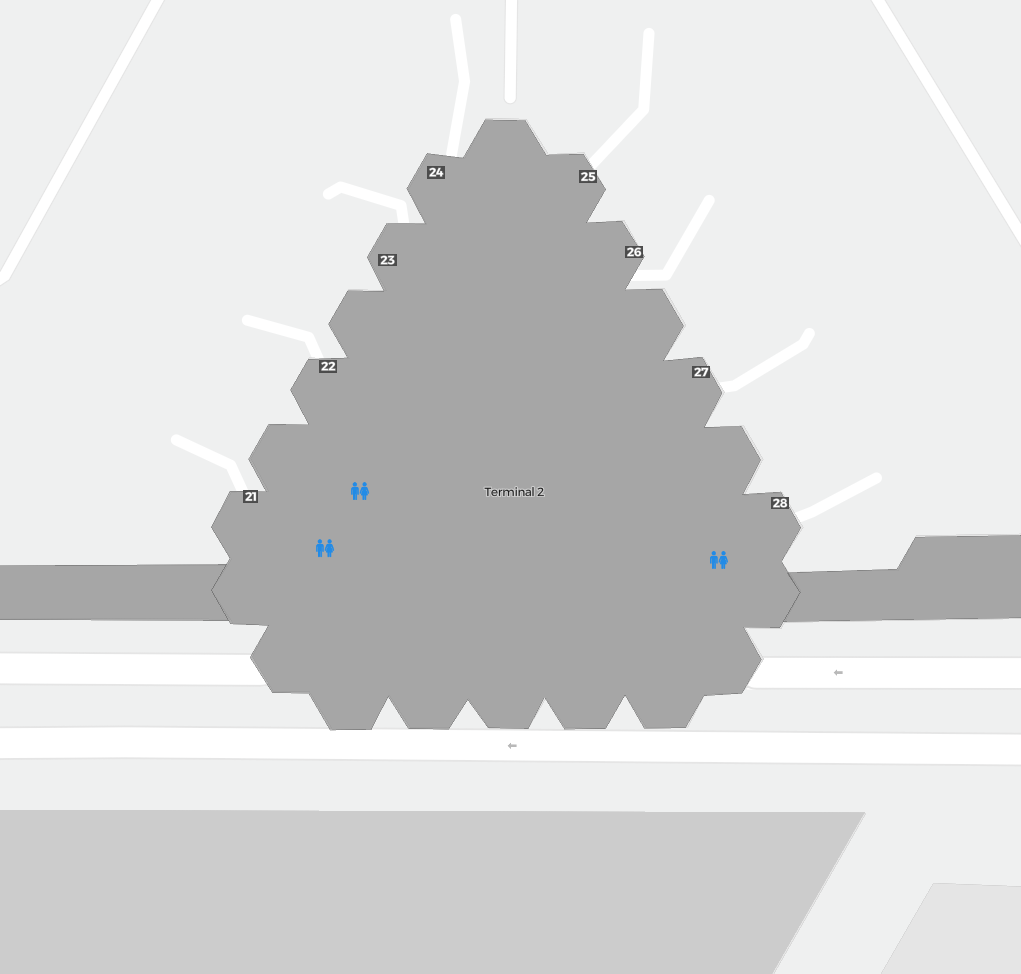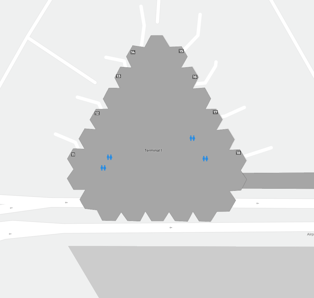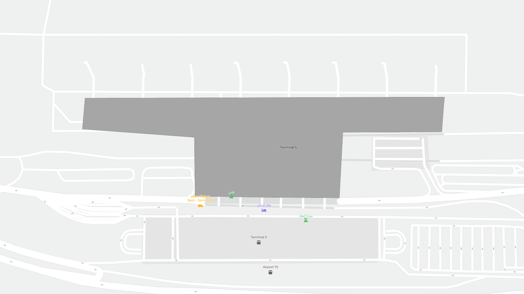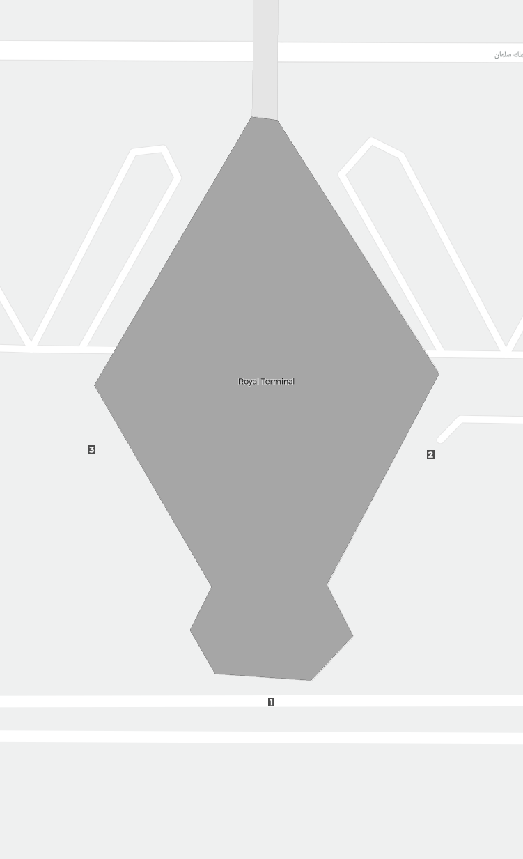 To jest powiększalna mapa nad Rijad (RUH). Mapa pozwala zobaczyć teren z terminalami, parkingami, a na niektórych lotniskach także szczegóły dotyczące bramek, wypożyczalni samochodów i innych udogodnień przy powiększeniu.
