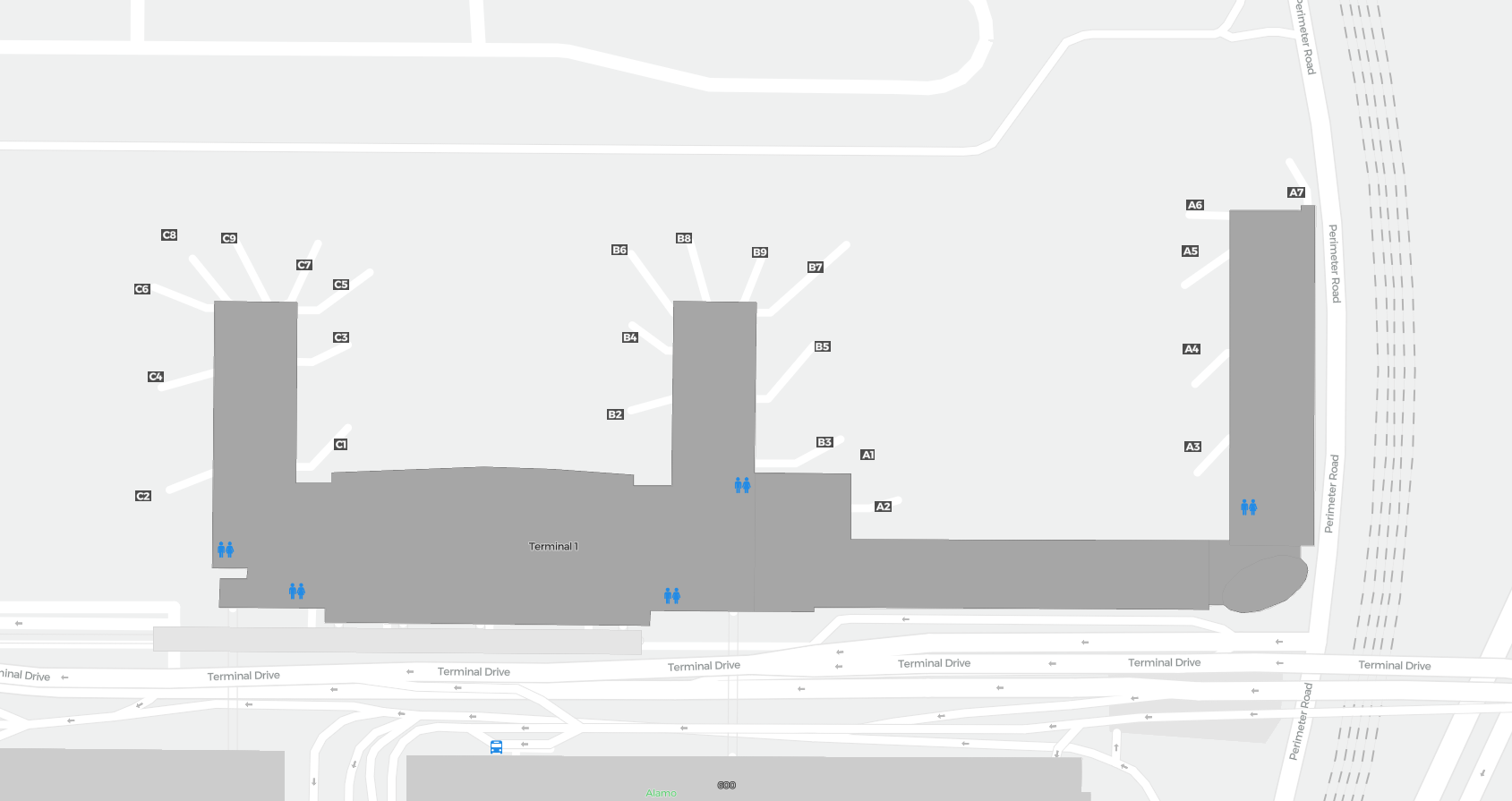 To jest powiększalna mapa nad Fort Lauderdale (FLL). Mapa pozwala zobaczyć teren z terminalami, parkingami, a na niektórych lotniskach także szczegóły dotyczące bramek, wypożyczalni samochodów i innych udogodnień przy powiększeniu.