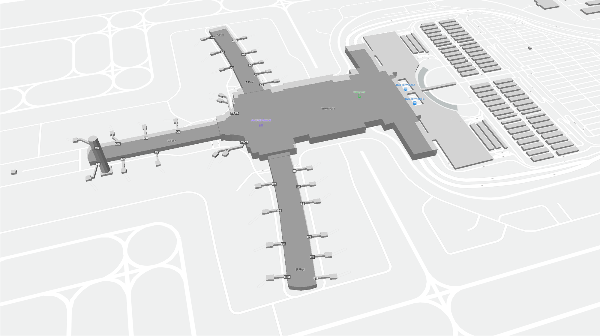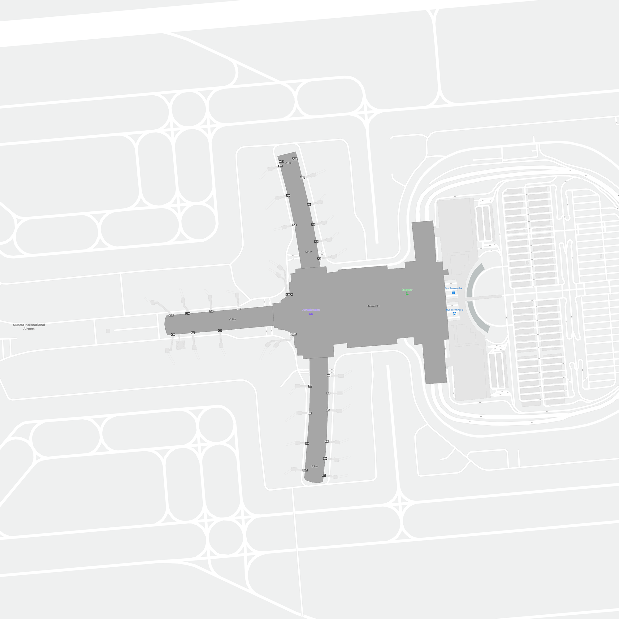 To jest powiększalna mapa nad Maskat (MCT). Mapa pozwala zobaczyć teren z terminalami, parkingami, a na niektórych lotniskach także szczegóły dotyczące bramek, wypożyczalni samochodów i innych udogodnień przy powiększeniu.
