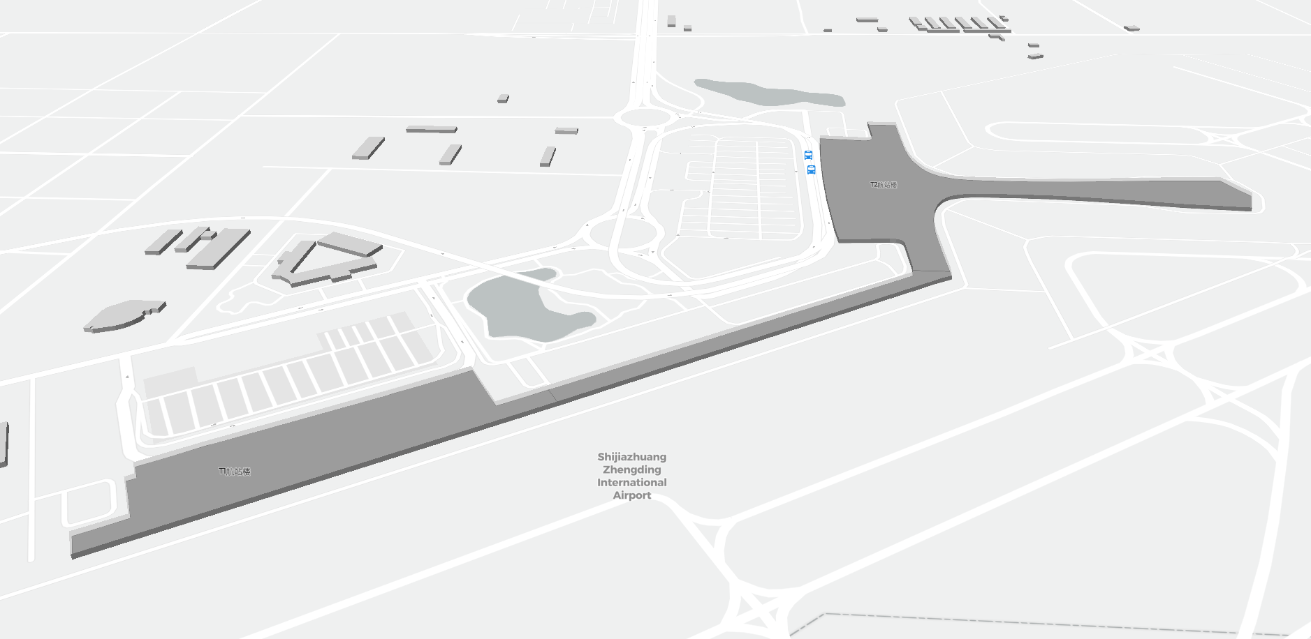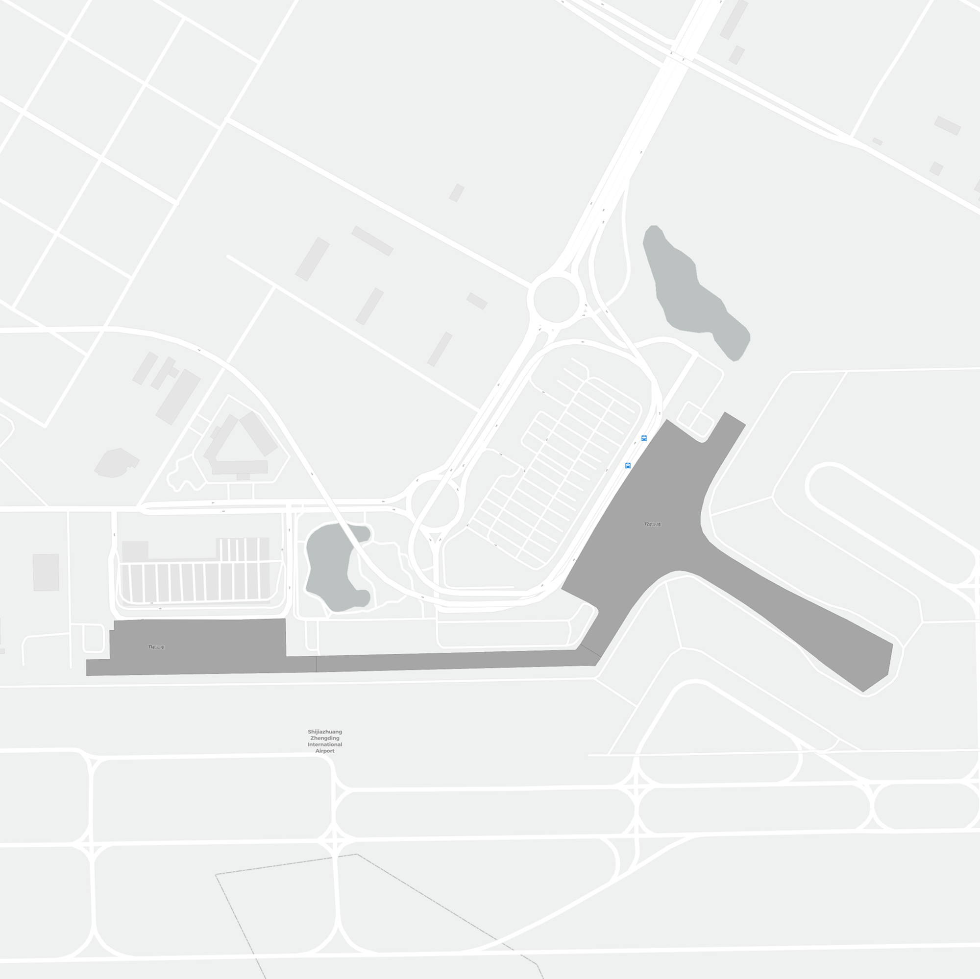 To jest powiększalna mapa nad Shijiazhuang (SJW). Mapa pozwala zobaczyć teren z terminalami, parkingami, a na niektórych lotniskach także szczegóły dotyczące bramek, wypożyczalni samochodów i innych udogodnień przy powiększeniu.