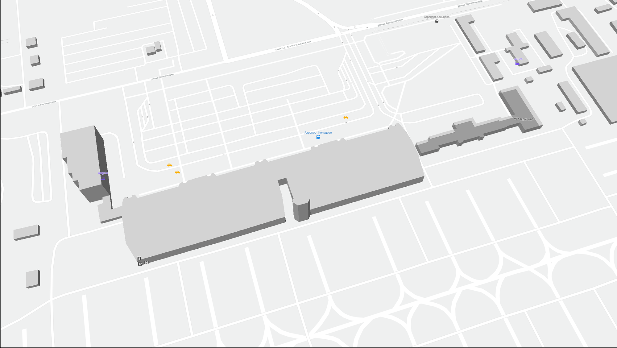 To jest powiększalna mapa nad Jekaterynburg (SVX). Mapa pozwala zobaczyć teren z terminalami, parkingami, a na niektórych lotniskach także szczegóły dotyczące bramek, wypożyczalni samochodów i innych udogodnień przy powiększeniu.