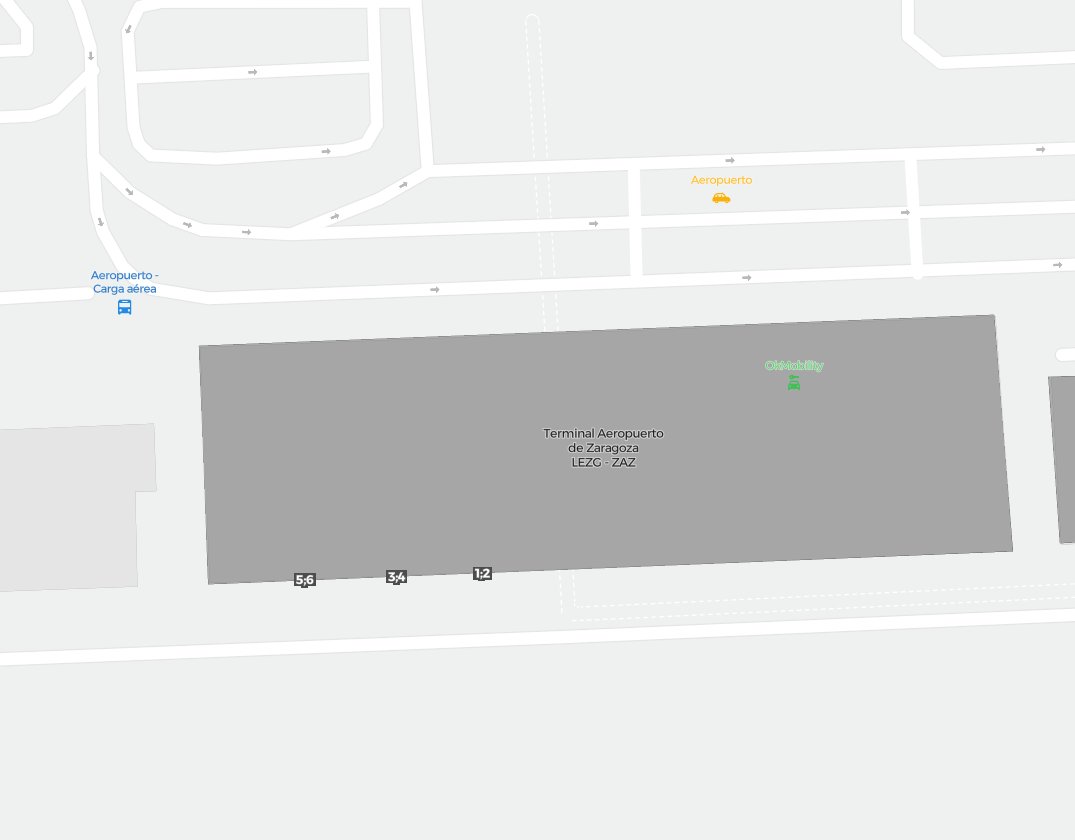 To jest powiększalna mapa nad Saragossa (ZAZ). Mapa pozwala zobaczyć teren z terminalami, parkingami, a na niektórych lotniskach także szczegóły dotyczące bramek, wypożyczalni samochodów i innych udogodnień przy powiększeniu.
